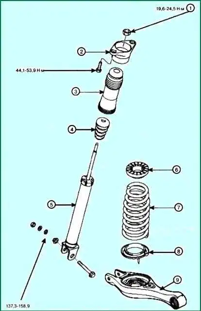 Entfernen Sie den Stoßdämpfer der Hinterradaufhängung, um die Teile der Hinterradaufhängung und den Stoßdämpfer selbst auszutauschen