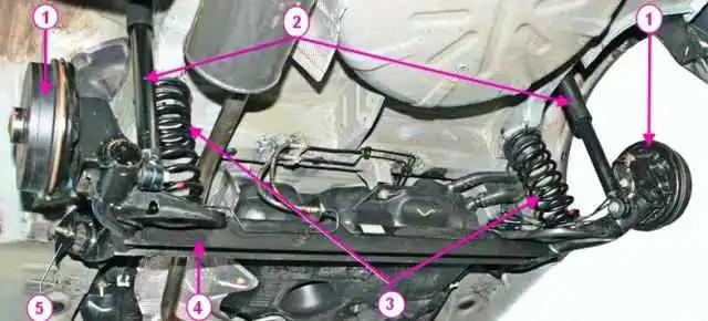 Zuletzt ziehen wir die Muttern der Bolzen der Hebel an den Halterungen fest, wenn das Auto auf Rädern steht.