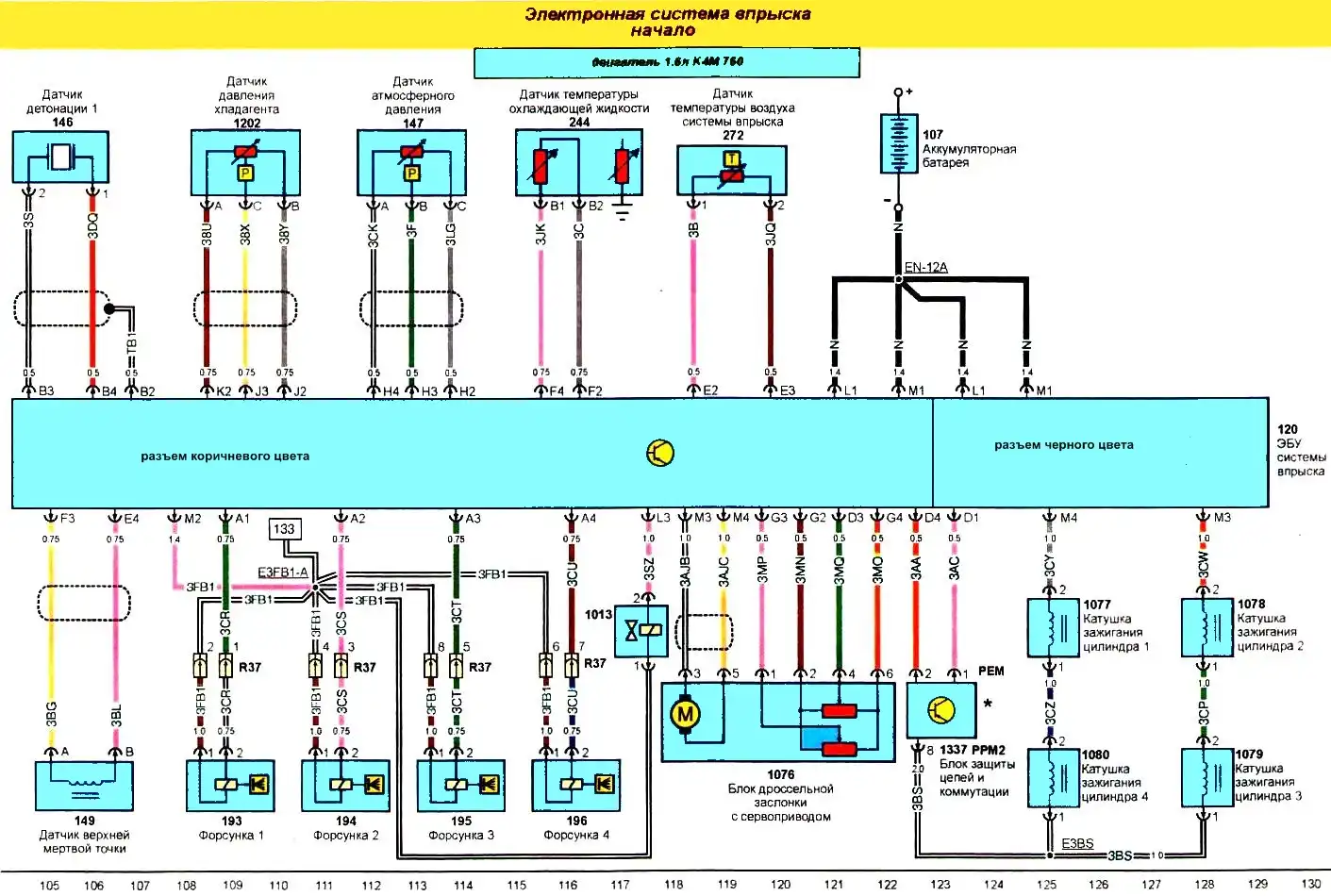 Схема впрыска двигатель 1.6л. Renault Megane 2