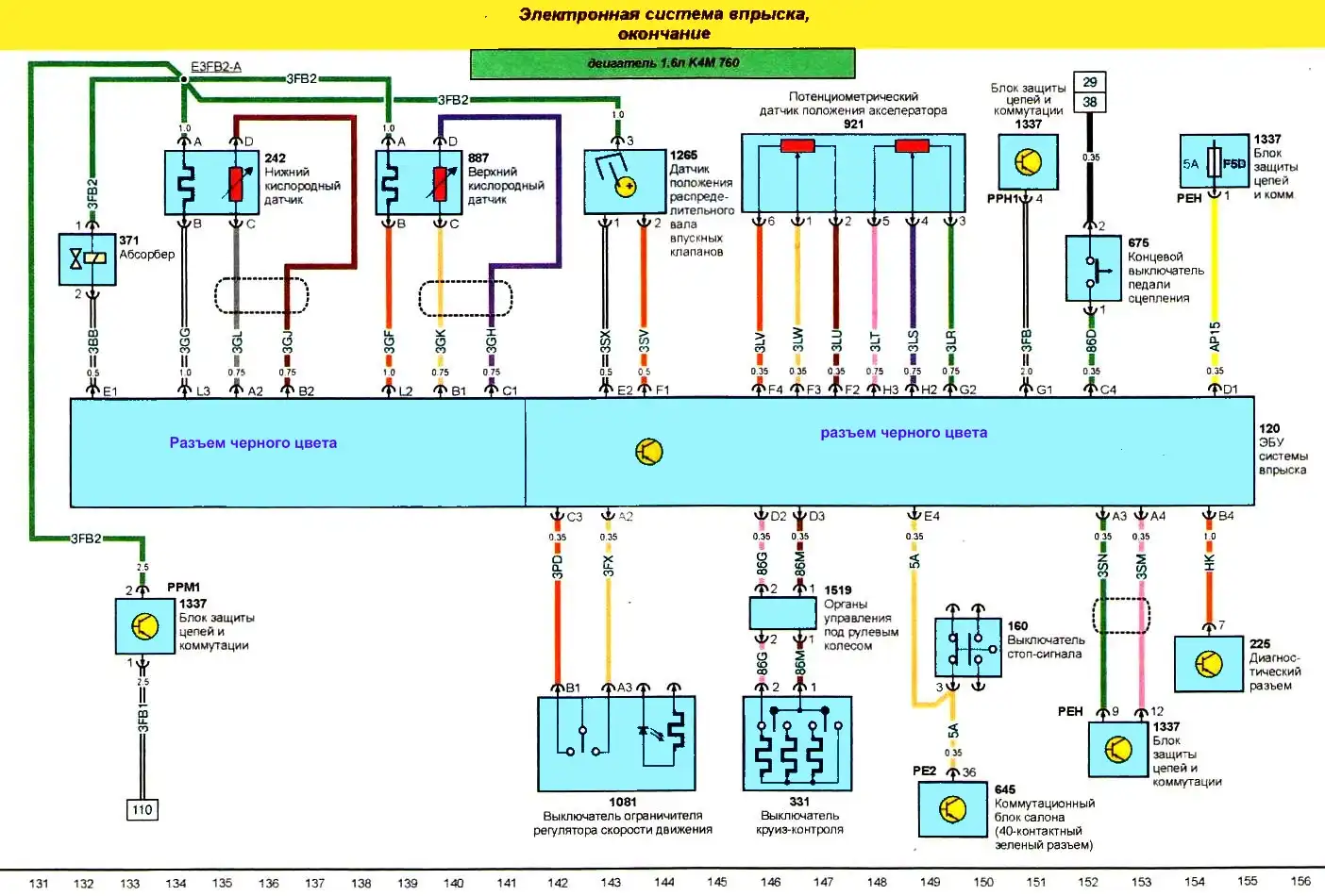 Схема системы впрыска двигатель 1.6л. K4M760 Renault Megane 2