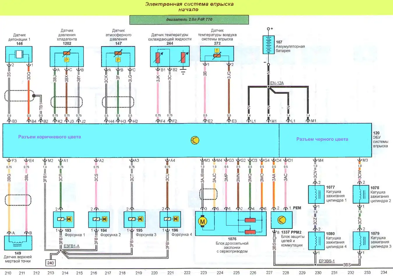 Схема впрыска двигатель 2.0л. F4R770 Renault Megane 2