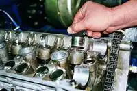 Turning the head over and pouring kerosene into the combustion chambers to control the tightness of the valves.