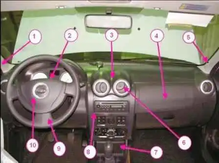 Remove the upholstery of the pillars of the wind window left 1 and right 5 (see Figure 1), overcoming the force of the latches.