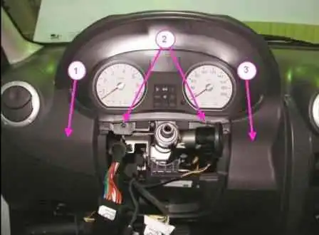Remove the central trim 1, figure 5, instrument panels, overcoming the force of the latches.