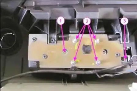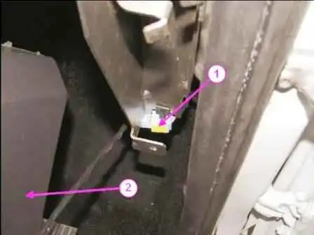 Using a Torx T20 head, unscrew the two screws 3 fastening the headlight corrector 2 adjuster, remove it from the hole in the instrument panel.