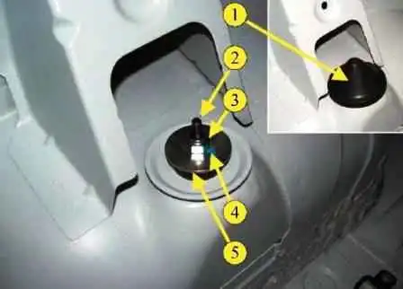 Remove the plugs 1, Figure 1, of the places where the shock absorbers are attached to the rear wheel arches. Remove the rear wheels.