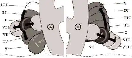 Bold lines show initial positions, thin lines show fixed positions, and dotted lines show non-fixed positions of the levers.