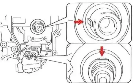 Turn the crankshaft clockwise approximately 90º so that the key at its end is in the upper position
