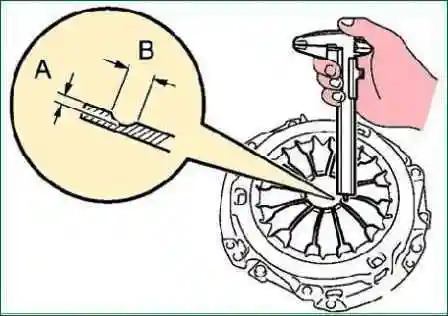 Using a vernier caliper, we check the depth and width of the wear of the petals of the diaphragm spring
