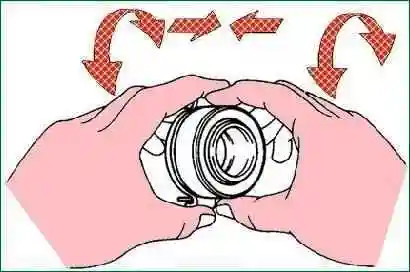 We rotate the clutch release bearing by hand, applying force in the axial direction, we check the release bearing
