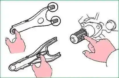Installing the clutch release fork with the clutch release bearing into the gearbox
