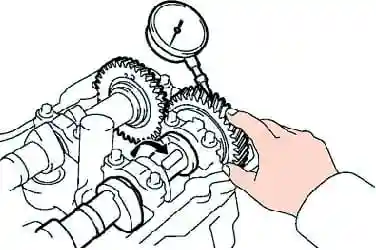Measuring the clearance in the gearing of the camshafts