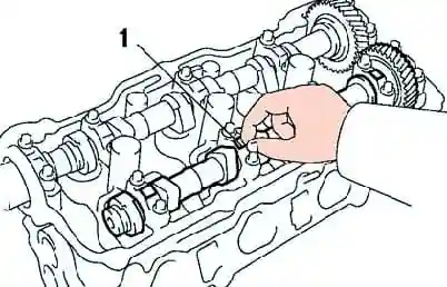 Measure the axial clearance with an indicator when moving the camshafts back and forth (Fig. 1)