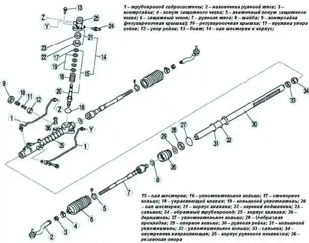 Los componentes del mecanismo de dirección y la barra de dirección se muestran en la fig. 1.