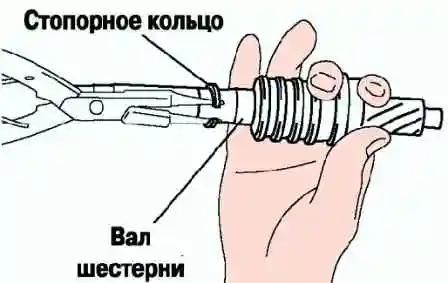 Retire con cuidado el anillo de retención, teniendo cuidado de no dañar el eje del engranaje