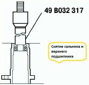 Extraiga el soporte de goma de la carcasa del mecanismo de dirección con herramientas especiales y una prensa (fig. 11)