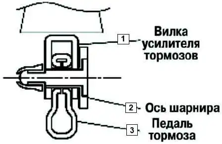 Asegúrese de que el pasador de la bisagra toque completamente la horquilla del servofreno (fig. 2).