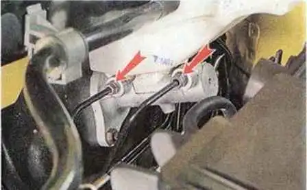 Mueva el servofreno hacia la parte delantera del automóvil para que la horquilla del servofreno no entre en contacto con la palanca del pedal del freno.