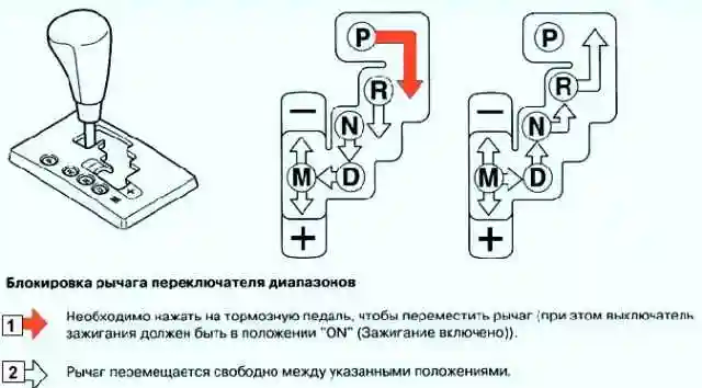 La palanca selectora de rango no se puede mover fuera de la posición "P" (estacionamiento) cuando el interruptor de encendido está en la posición "ACC" (consumidores auxiliares) o "LOCK" (bloqueo).