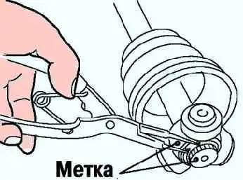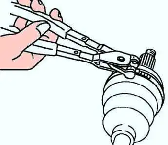 Dobla la abrazadera en la dirección opuesta a la rotación del eje de transmisión cuando el vehículo avanza y usa un par de alicates para apretar la abrazadera firmemente.