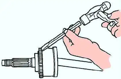 Separe el rotor del sensor de freno antibloqueo del eje de transmisión con un cincel (fig. 7).