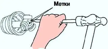 Marcar el cuerpo de la bisagra y el eje para su posterior montaje (Fig. 4).