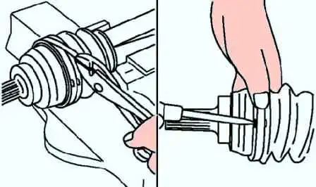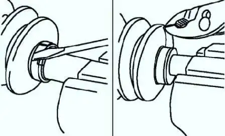 Retire la abrazadera de la funda (en el lado de la rueda) con unos alicates especiales como se muestra en la Figura 2.