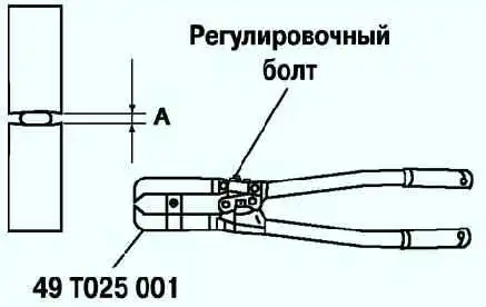 Ajuste el espacio "A" girando el perno de ajuste de la herramienta especial (fig. 13). Espacio "A": 2,9 mm