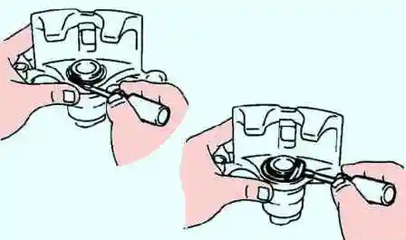 Hundimos el pistón gradualmente, controlando el nivel de líquido en el depósito del cilindro de freno principal. Si es necesario, bombeamos el líquido del depósito con una pera de goma o una jeringa