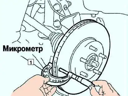 Con un micrómetro, mida el grosor del disco de freno (fig. 3).