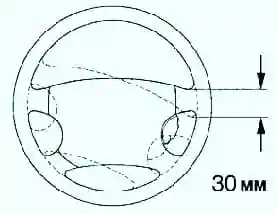 Comprobación de la ubicación de los radios del volante la rueda izquierda, que, con las ruedas delanteras en posición recta, debe estar situada simétricamente respecto al eje vertical.