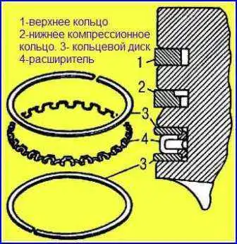 Измерить щупом зазор в замке кольца, он должен быть в пределах 0,3–0,6 мм для компрессионных колец и 0,5–1,0 мм для дисков маслосъемных.