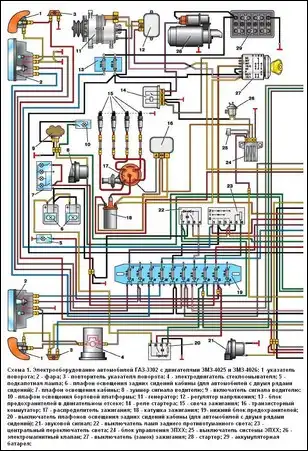 Газель көлігінің электр жабдығы бір сымды схема бойынша жасалған: