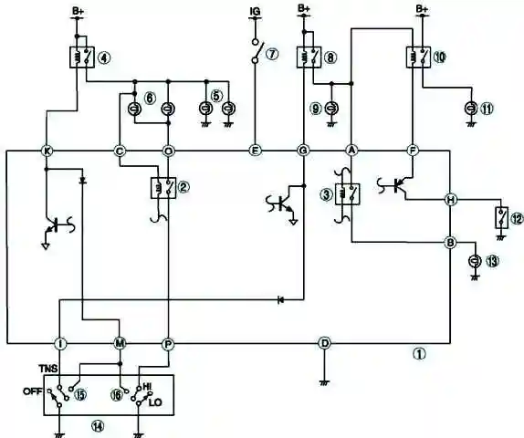 Жүргізуші жарығын басқару жүйесі оталдыру арнайы блоктың көмегімен өшірілген кезде қысқа сәулелік фаралар мен TNS жұмысын автоматты түрде басқарады.