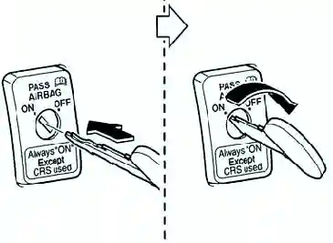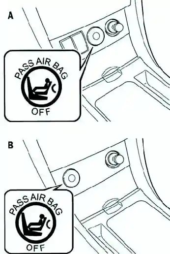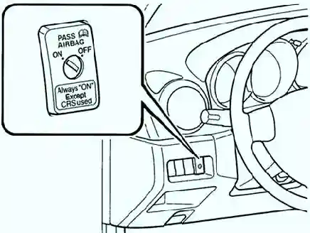 Алдыңғы жолаушы қауіпсіздік жастықшасын өшіру қосқышы алдыңғы жолаушының алдыңғы және бүйірлік қауіпсіздік жастықшаларын, сондай-ақ тиісті қауіпсіздік белдігін алдын ала кергішті өшіруге мүмкіндік береді.