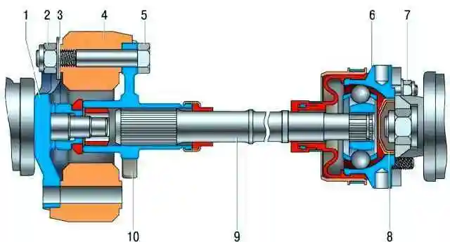 Аралық кардан білігі екі шетінде ойықтары бар штангадан жасалған.