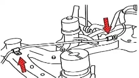Біз гидравликалық сұйықтықты қайтару құбырының ұстағыштарын алдыңғы аспа қосалқы рамасына бекітетін екі болтты бұрап шығарамыз