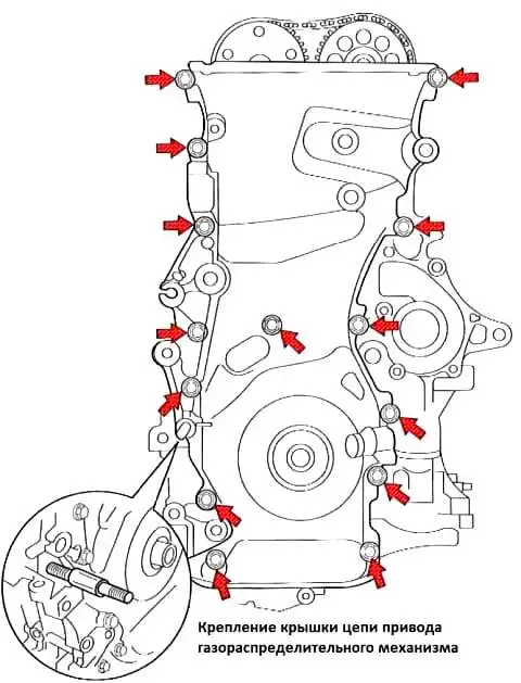 Уақыт тізбегінің қақпағын шешкен кезде, оның жағдайына қарамастан иінді біліктің май тығыздағышын ауыстырыңыз