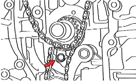 Уақыт тізбегінің кергішін бекітетін екі гайканы бұрап шығарамыз және оны шығарамыз