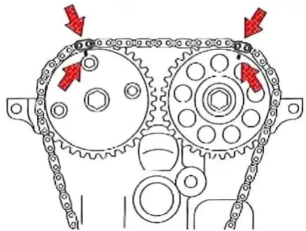 - біз тізбекті таратқыш білігінің жұлдызшаларына қоямыз, белгіленген буындарды жұлдызшалардағы белгілермен теңестіреміз;