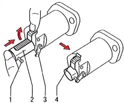 Иінді білікті сағат тіліне қарсы бұраңыз және поршеньді ілмектен ажыратыңыз;