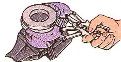 Дөңгелек тұмсық тістеуіктерді қолданып поршень ойықтарынан ілмектерді алыңыз (сур. 7); поршеньдік түйреуіштерді басыңыз.