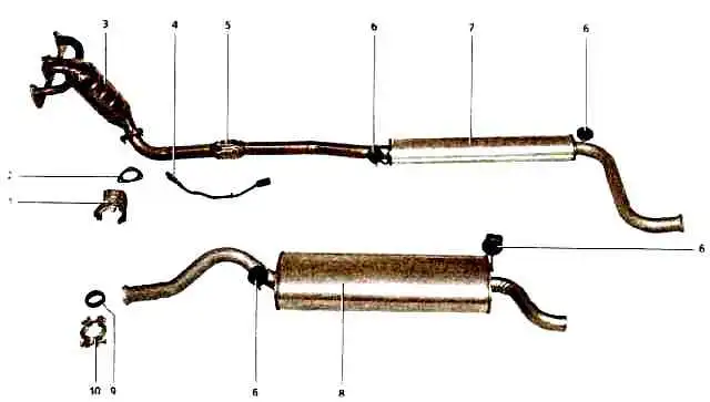 Қосымша дыбыс өшіргіштің құбыр фланецін коллектордың шпилькаларынан әр алып тастағаннан кейін тығыздағыш тығыздағышты жаңасымен ауыстыру керек.