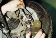 Через отверстия двумя отвертками отжимаем пружинные фиксаторы (на рисунке при снятой подушке), потянув подушку на себя, выводим крючки подушки из зацепления с фиксаторами на руле.