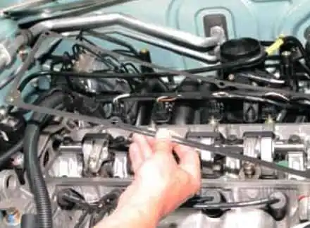 Вынимаем из крышки шланг вентиляции картерных газов.