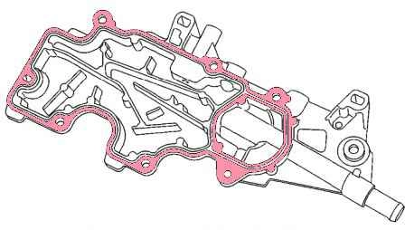 Нанести на маслоотделитель с помощью валика для малярных работ герметик Mastixo в соответствии с рисунком 5 (валик для малярных работ, герметик Mastixo).