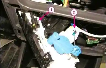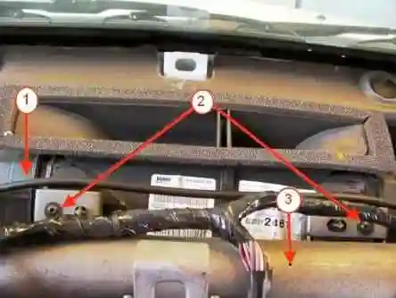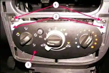 Головкой Torx T20 откручиваем два винта 1, рисунок 15, крепления блока управления 3 к панели приборов, сжимаем фиксаторы 2 и извлекаем блок.