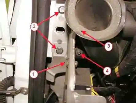 Головкой Torx T20 отворачиваем два винта 2, рисунок 4, крепления воздухораспределительного блока 1 к поперечине 3.