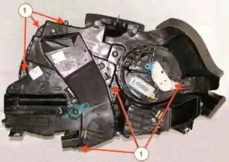 Снять блок отопителя в сборе с блоком управления отоплением, кондиционированием и вентиляцией.