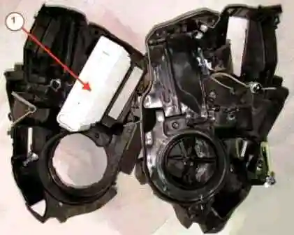 Извлекаем испаритель 1, рисунок 9, из блока отопителя.